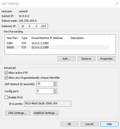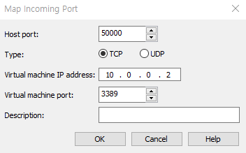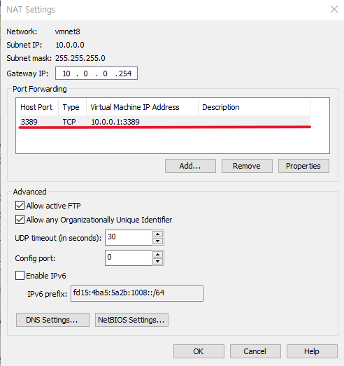 VM 안의 10.0.0.1:3389로 보내준다는 포트포워딩이다.