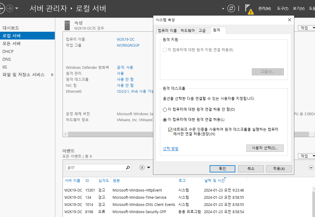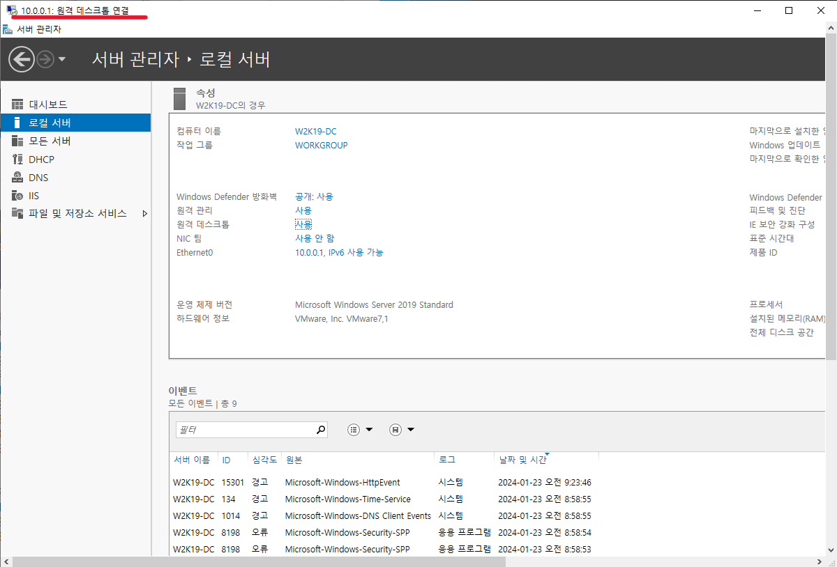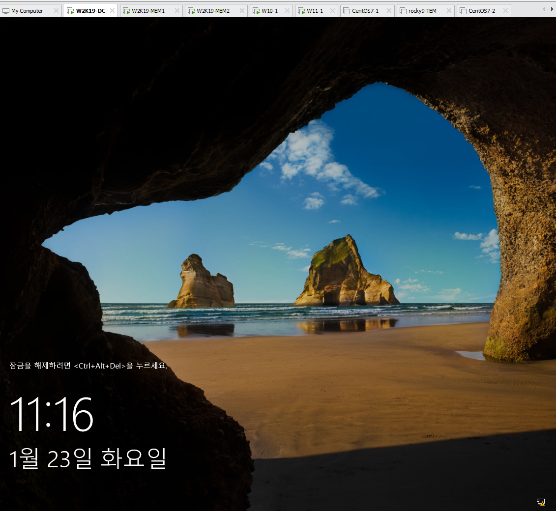 다시 본체(w2k19-DC)에서 로그인 해주면