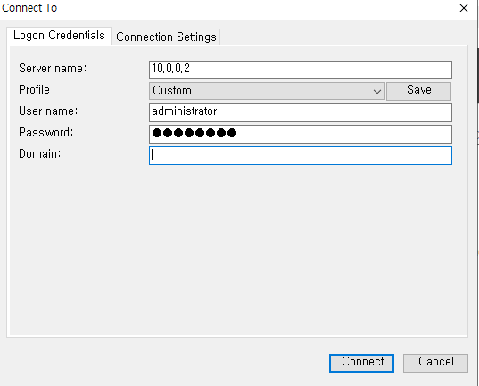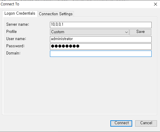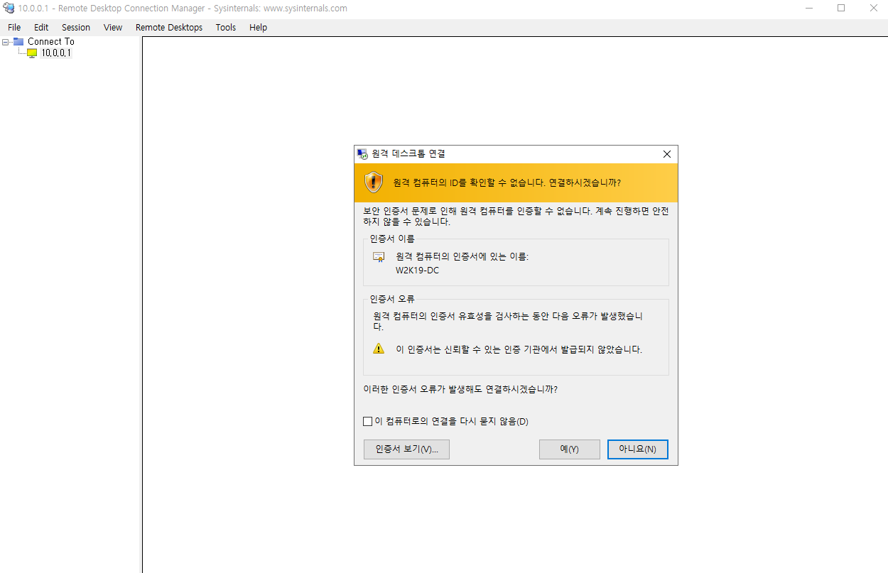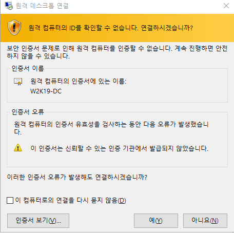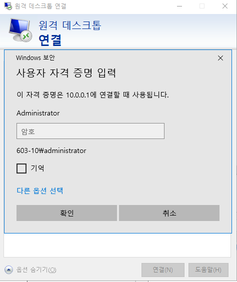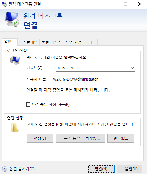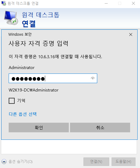 본인의 DC 서버 IP를 입력해 원격 접속 해보았다.