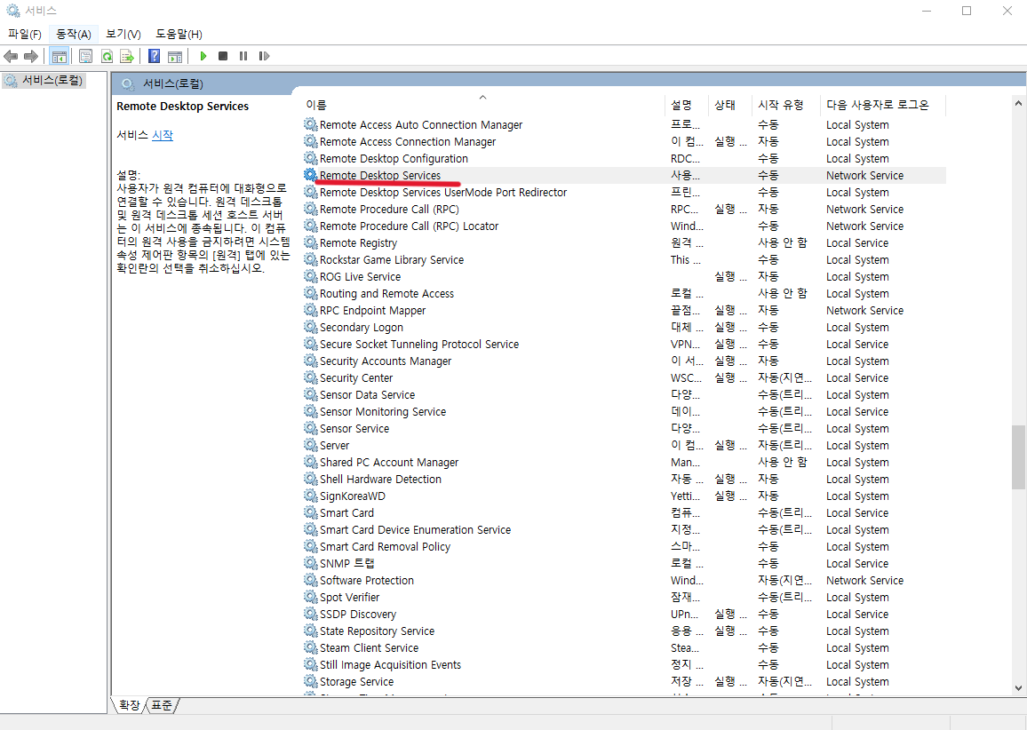 그리고 서비스의 Remote Desktop Services를 재시작 해주자..