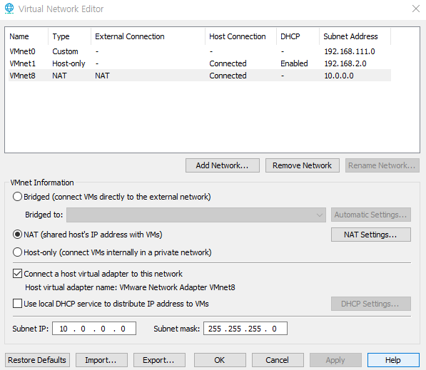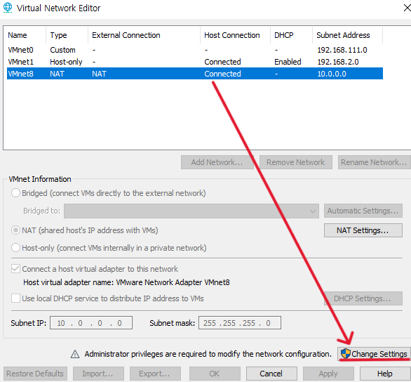 VM웨어의 edit 탭의 Virtual Network Editor를 클릭해주자.