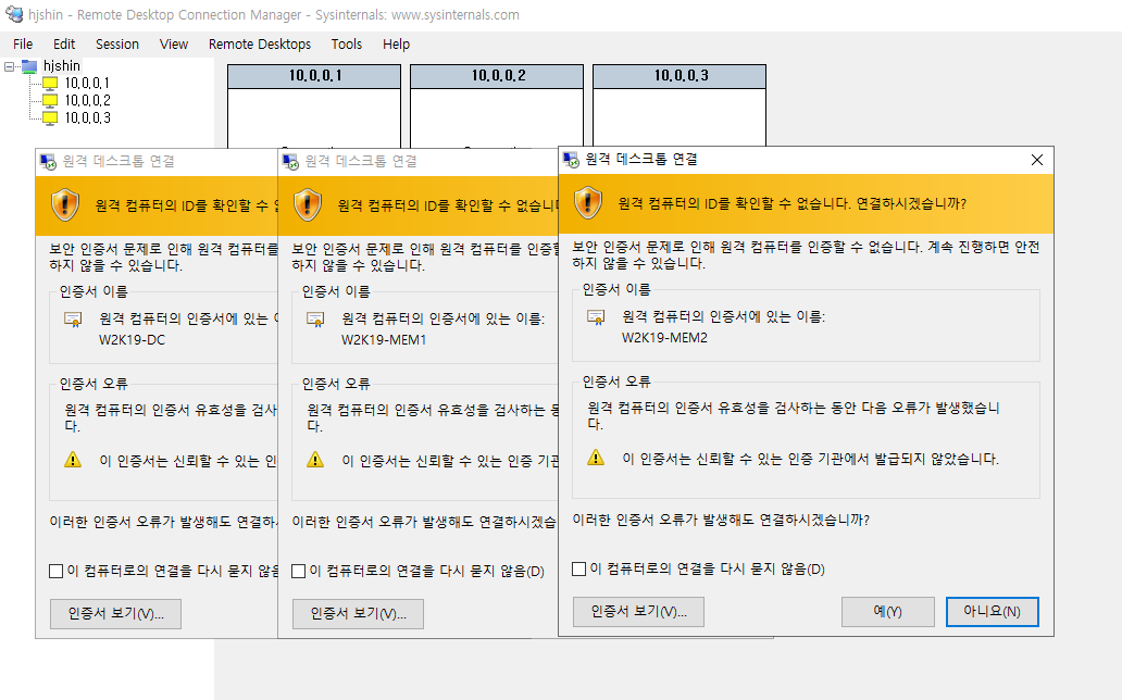 이처럼 3개의 PC가 한번에 원격 연결도 가능하다.
