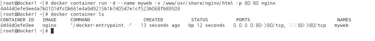 docker container run -d --name myweb -v /www:/usr/share/nginx/html -p 80:80 nginx