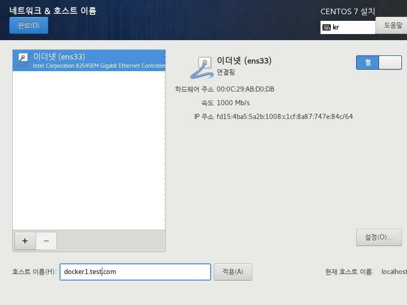 설치중 네트워크 설정 단계에서 호스트 이름을 바꿔줄 수도 있다.