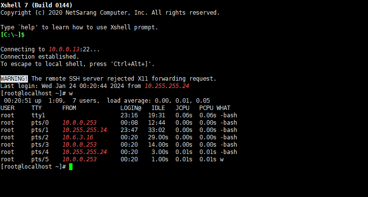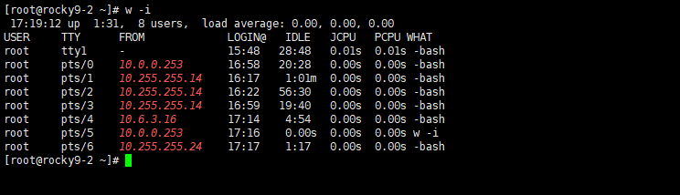 rocky9에서는 w 명령에서 기본적으로