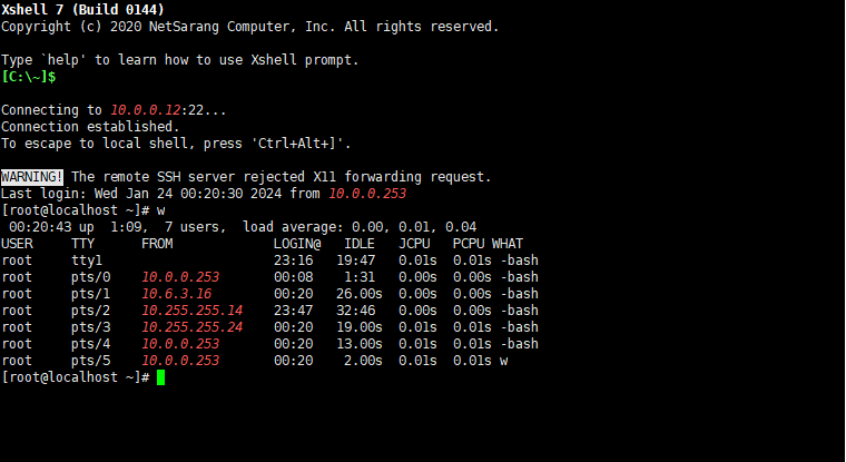 확인해보면 각각 다른 IP가 나의 CentOS에 접속한 것을 알 수 있다!!!