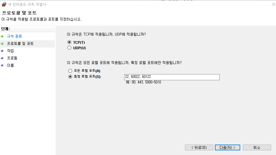 이 세가지로 포트포워딩 하겠다.