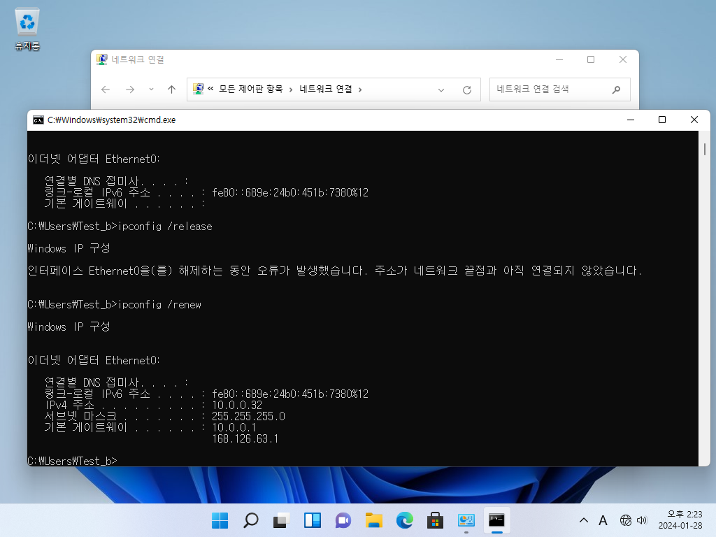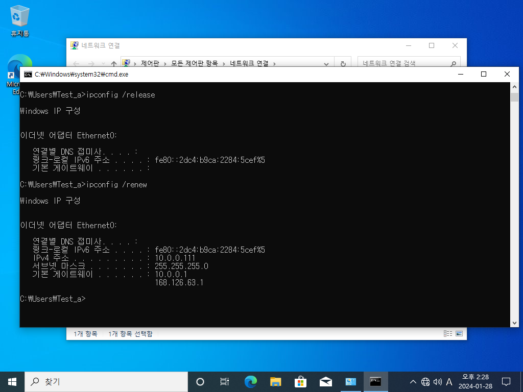이때는 강제로 아이피를 갱신시켜 보겠다.