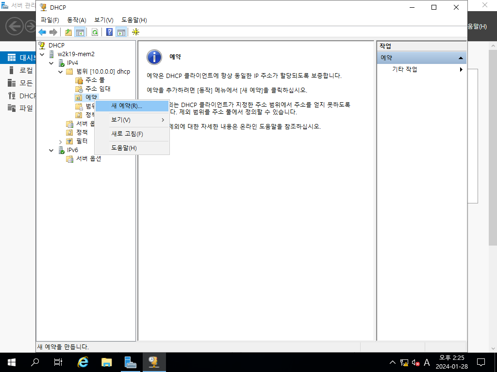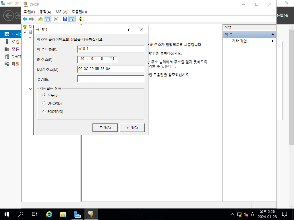 새 예약에 원하는 IP, MAC 주고를 입력해주자.