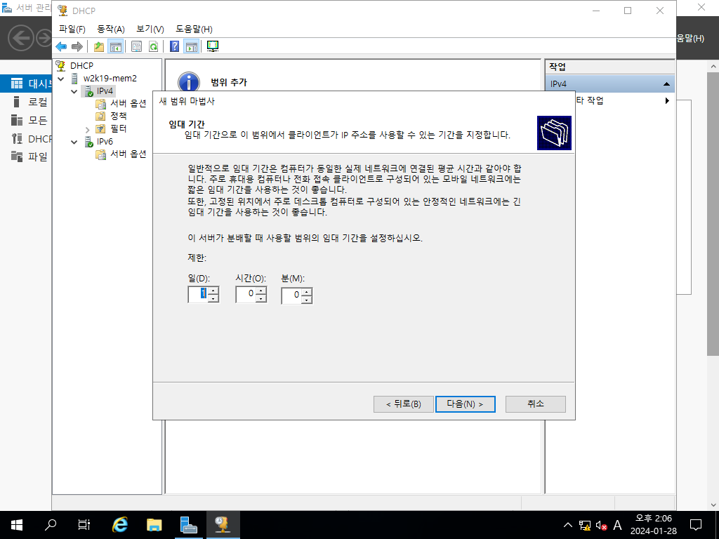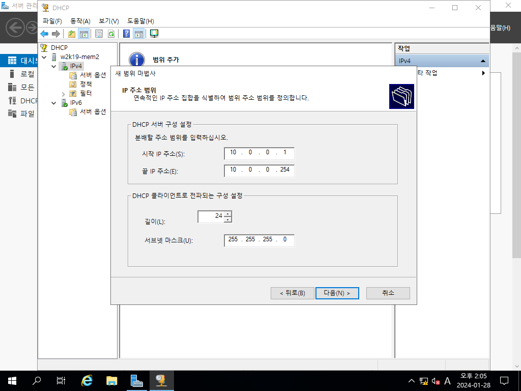 이제 윈도우 컴퓨터로 DHCP 설정을 이용해 보겠다.