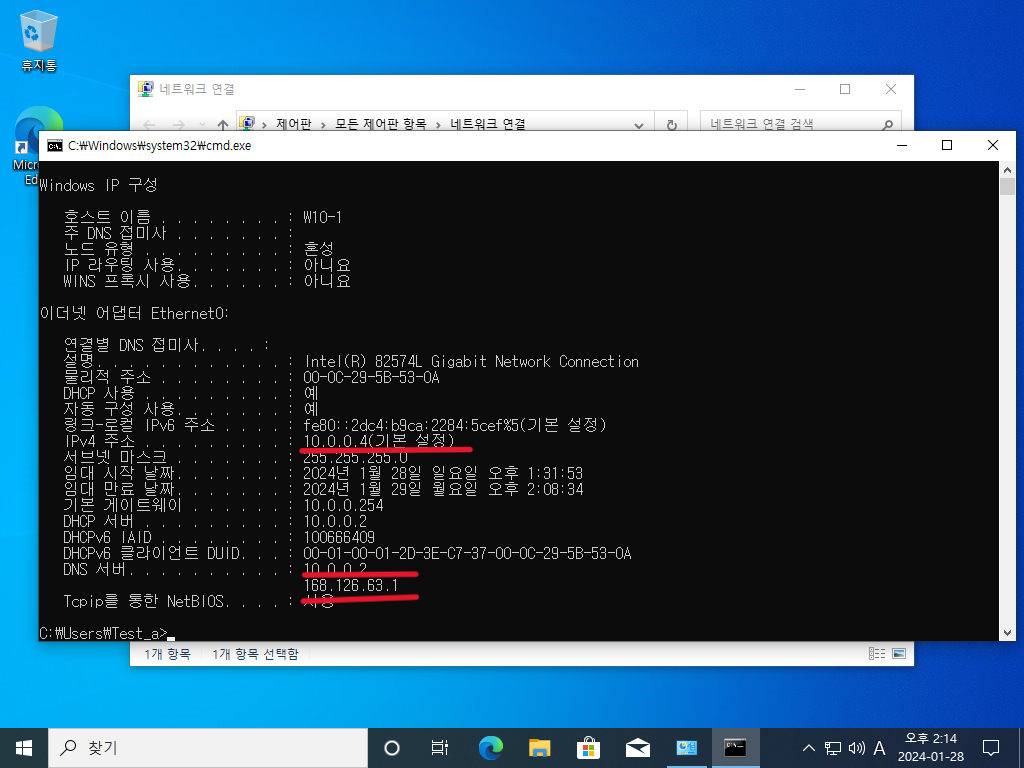 그런데 아직 IP , DNS서버가 바뀌지 않았다.