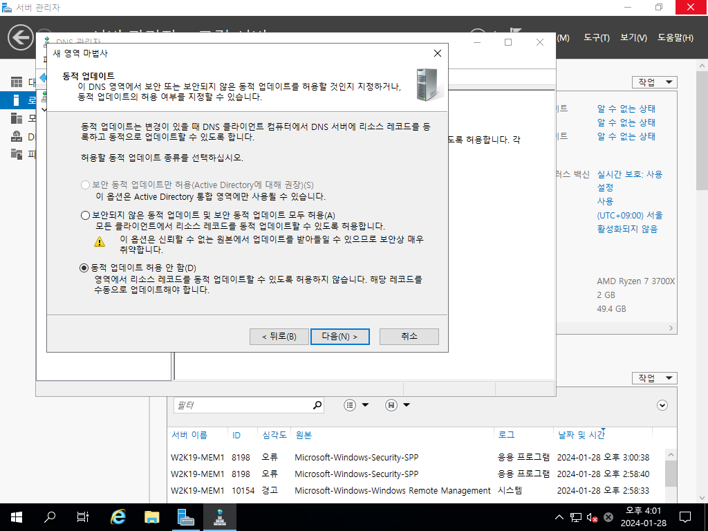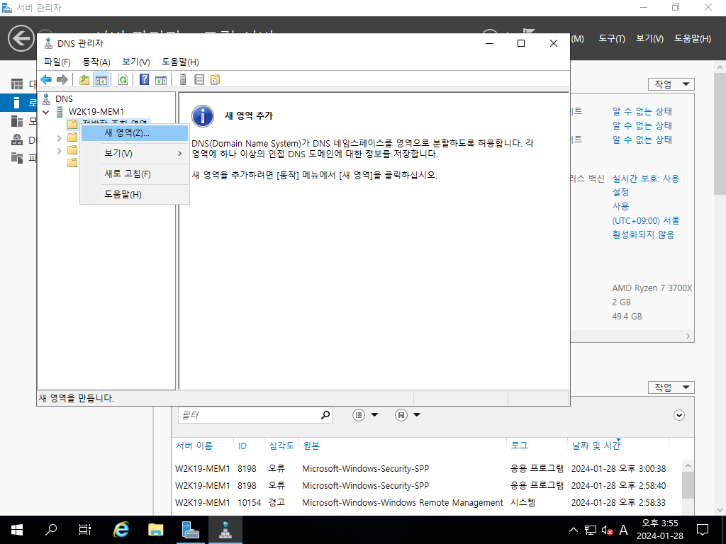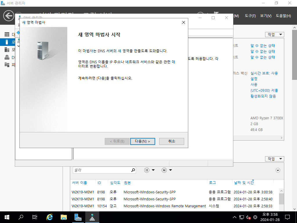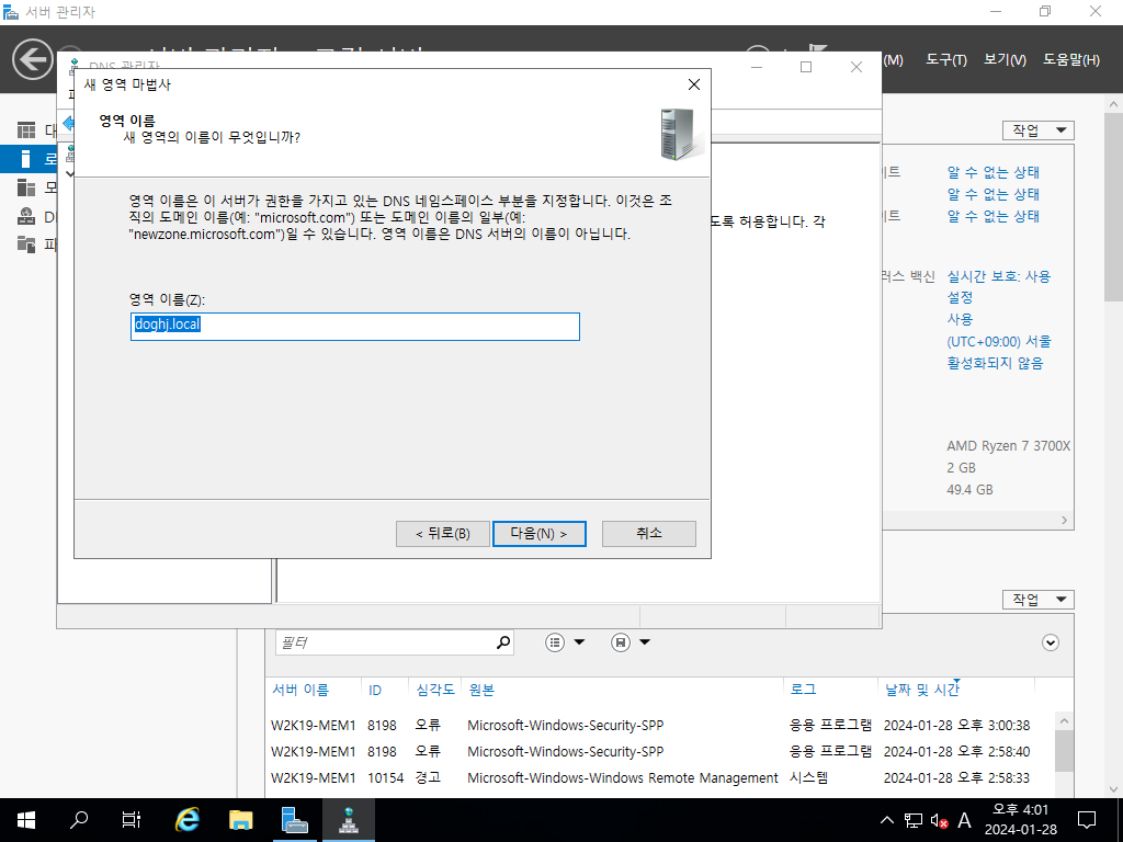 | Active Directory 7. 자식 도메인의 생성과 작업마스터, DNS 보조영역 (0) | 2024.01.20 |