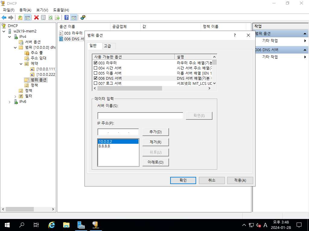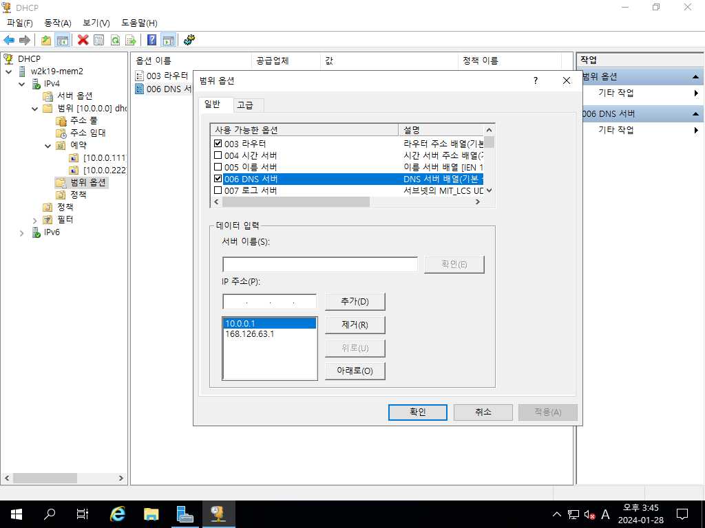 설치중 MEM2 의 DHCP 서버의 설정을 바꿔줘야한다!