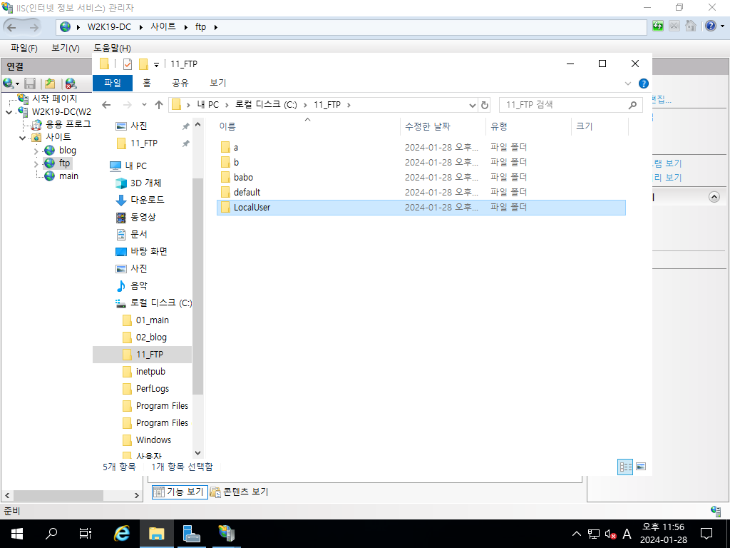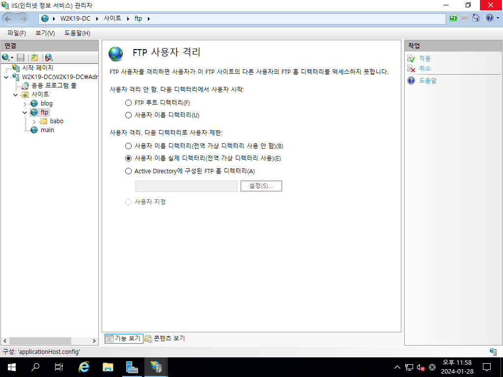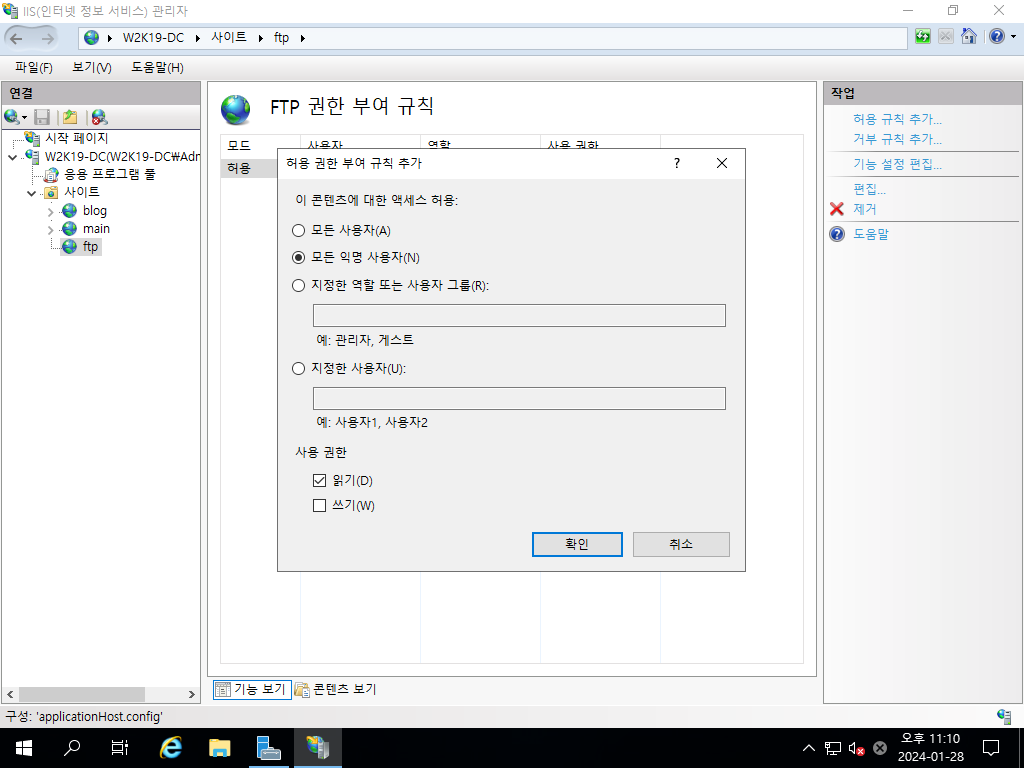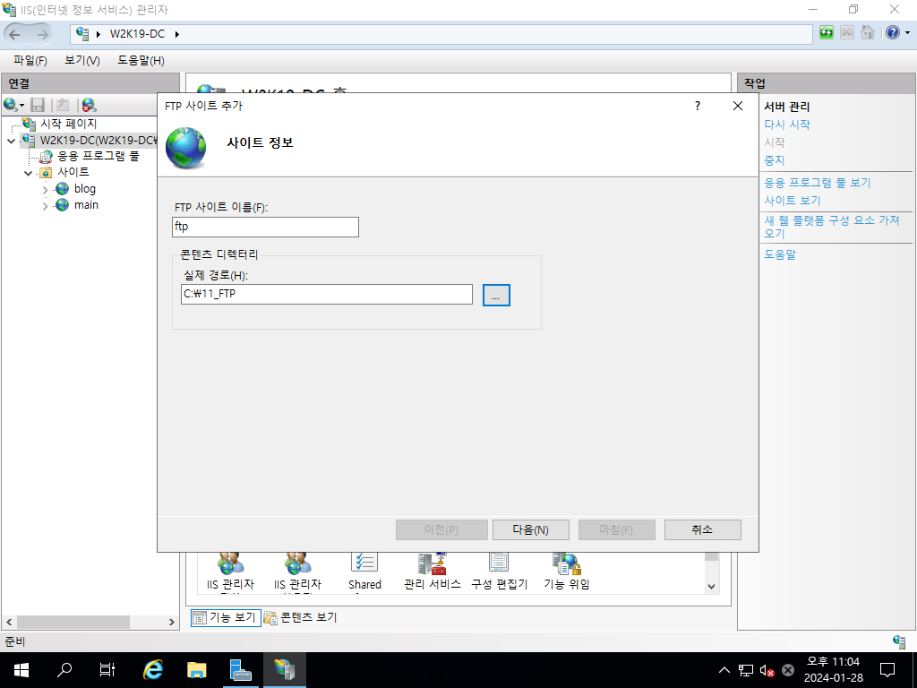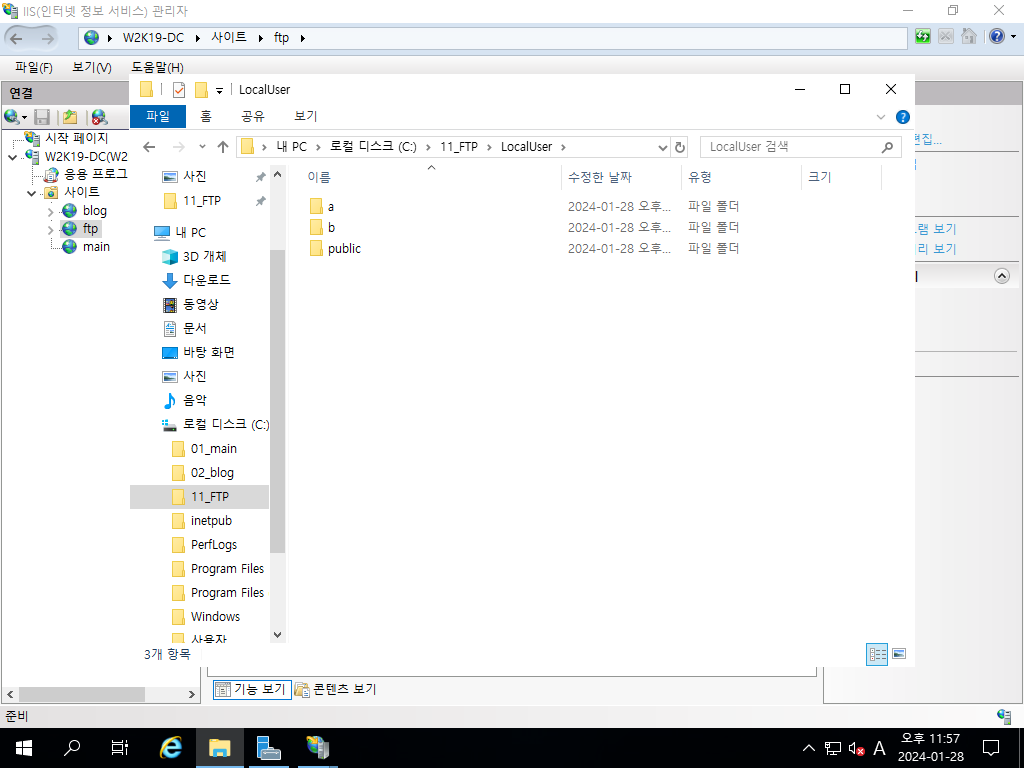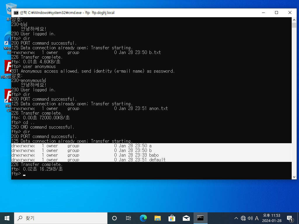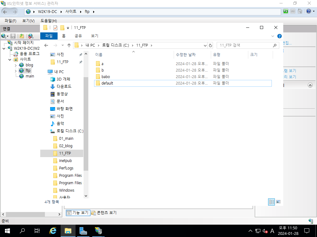 몇가지 설정을 마쳤으니 w10에서 FTP 서버에 접속해 보겠다.