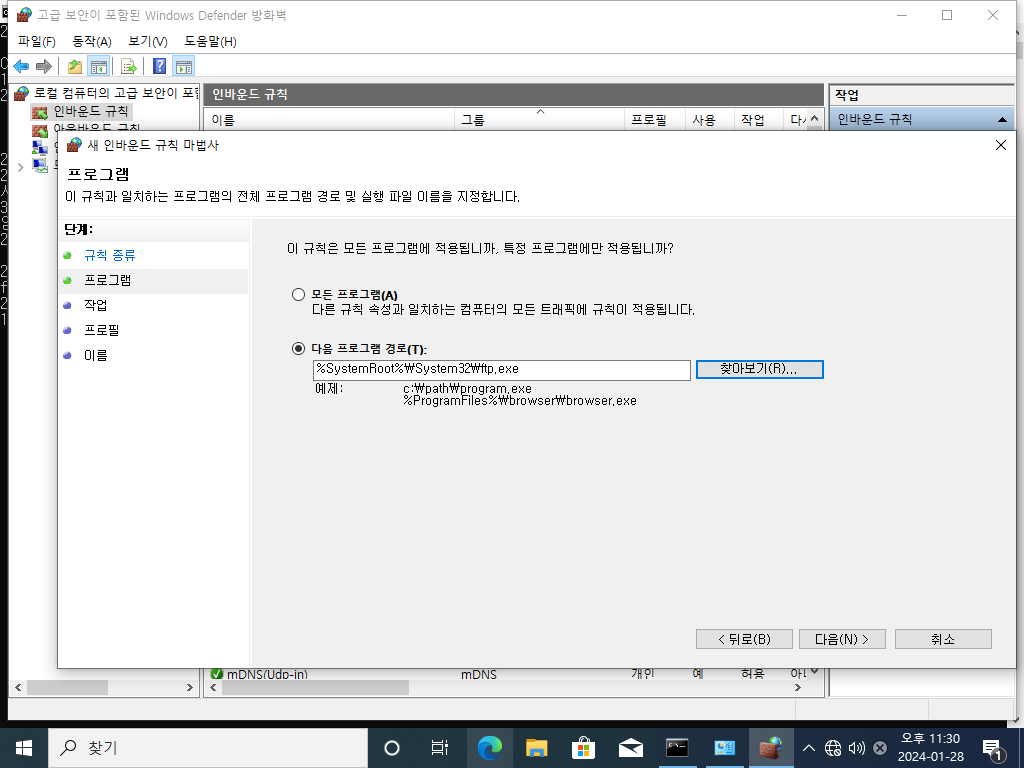 C:\Windows\System32\ftp.exe 를 선택 해준다