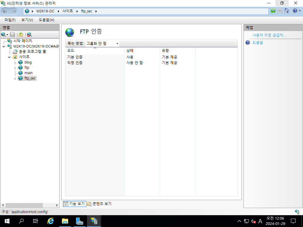 사용시에는 반드시 FTP 인증과 같이 설정 되어야 한다.