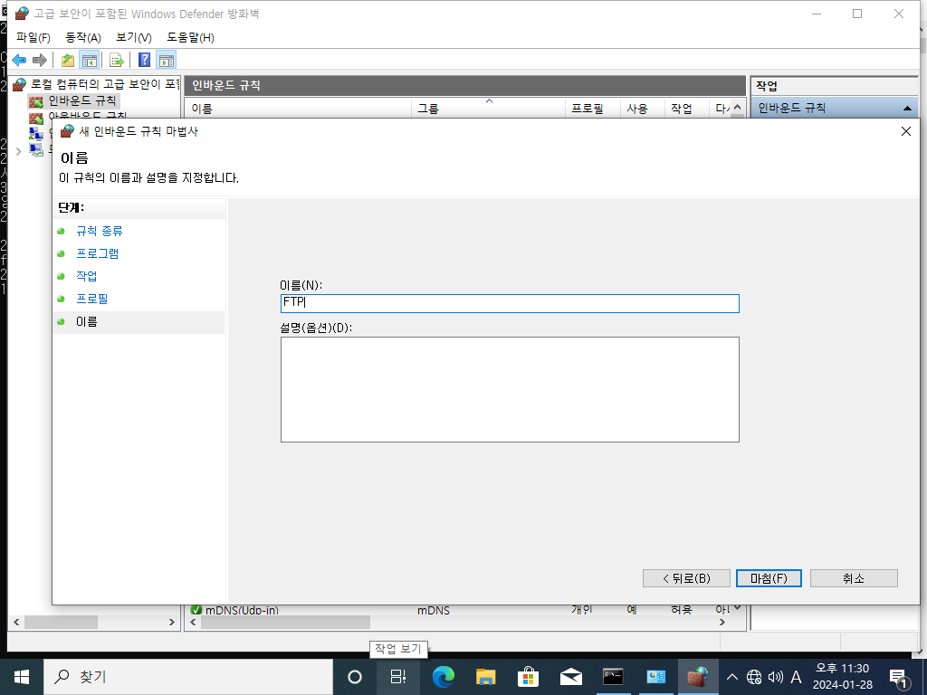 허용해준뒤 식별하기 쉽게 FTP로 작성해주자