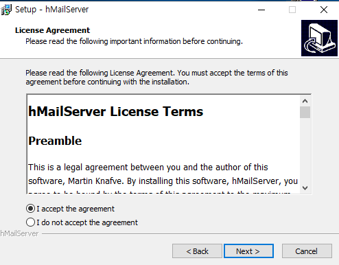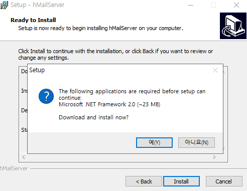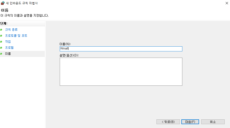설치를 마쳤으면 다시 hmail로 돌아가서 다시 진행해주자
