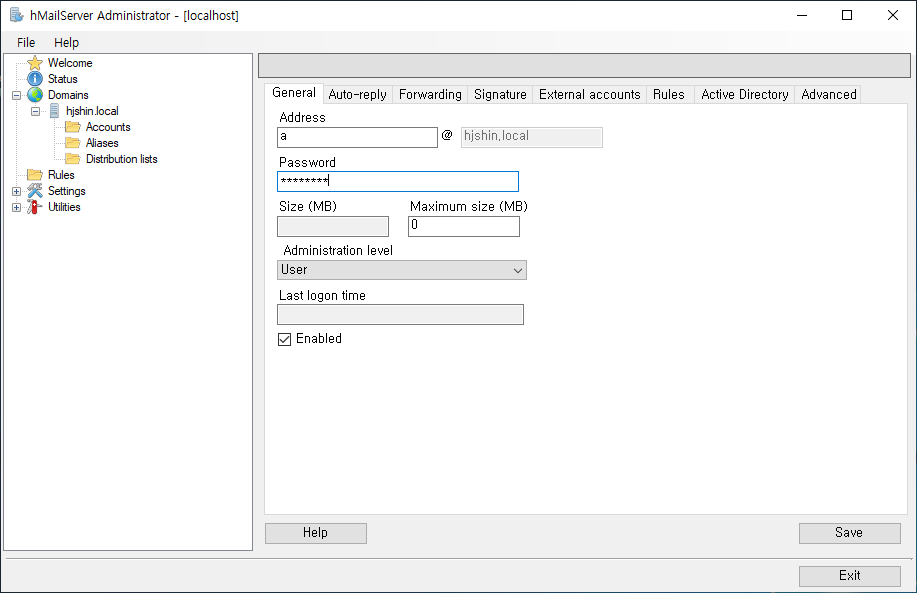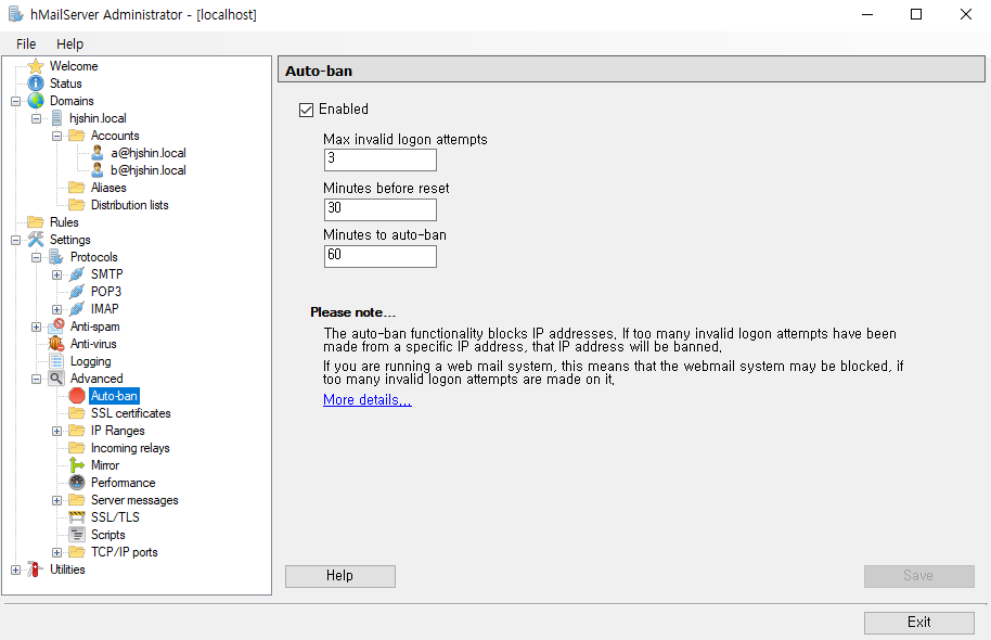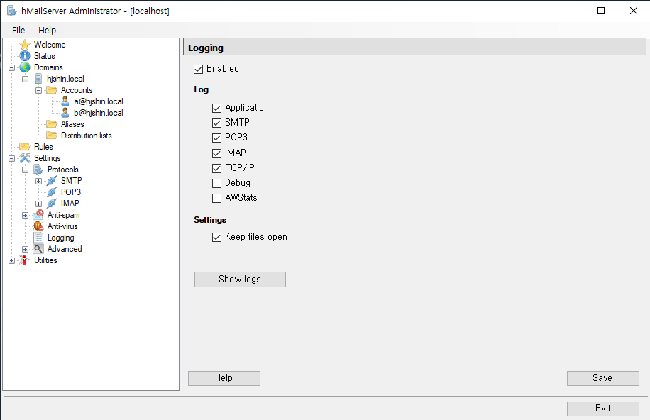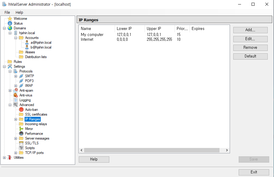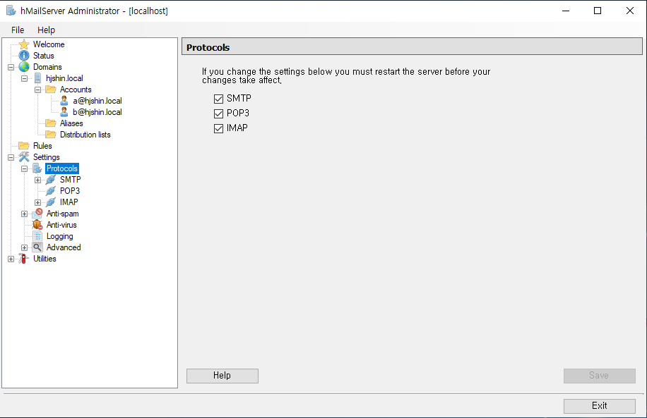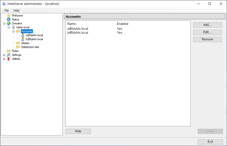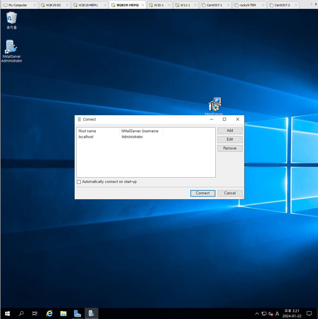 이제 MEM2의 hmailServer로 가서 설정을 해주자
