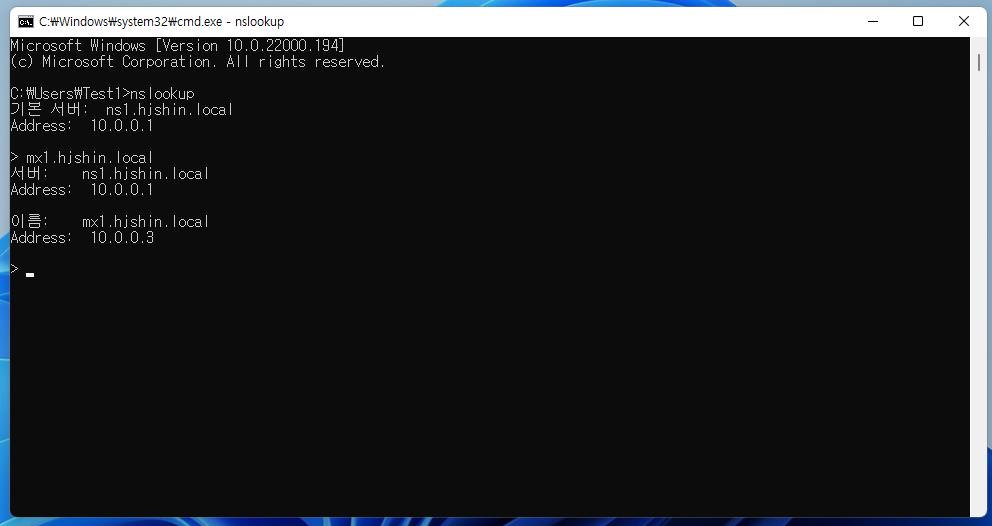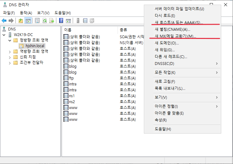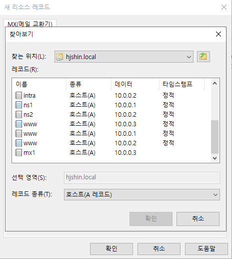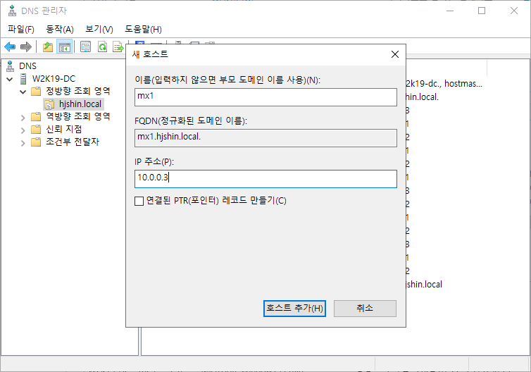 mx1.hjshin.local 호스트 10.0.0.3 이 만들어졌다.