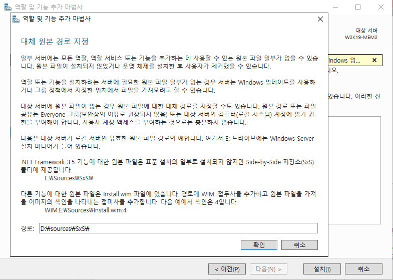 위 경로가 윈도우 내 기능 설치 파일이 있는 경로다!!