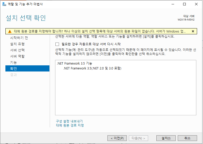 다행히도 윈도우 서버 기능에 .NET Framework설치가 내장되어 있다!