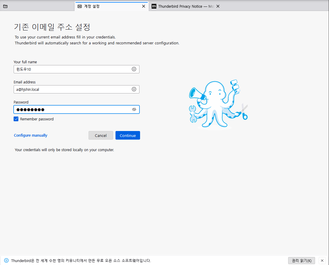 세가지를 입력 한 뒤에 Configure manually를 눌러주자