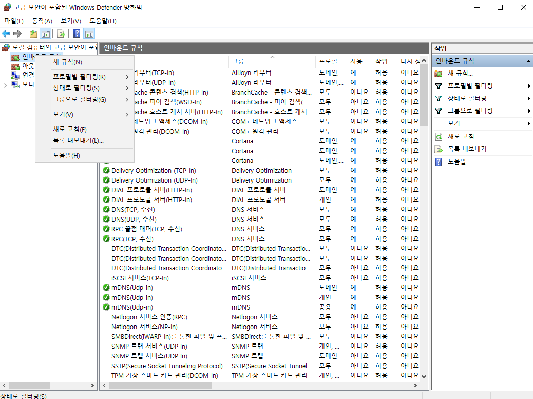 그 말은 윈도우 방화벽에서 포트를 개방시켜 줘야 한다는 말이다!