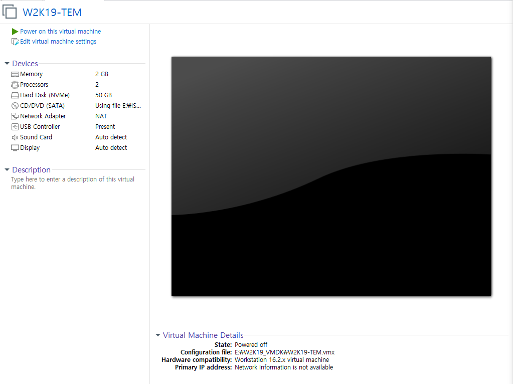 그래서 가상머신의 이름도 W2K19_TEM 이였던 것이다.