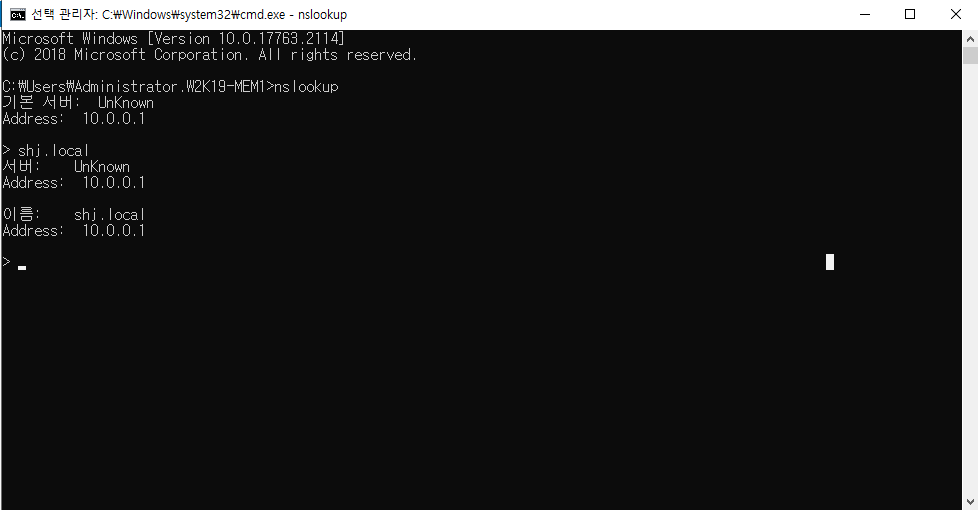 CMD창에서 nslookup 입력 후 도메인 이름을 입력해 위와 같이 정상적으로 출력되는지 확인한다.