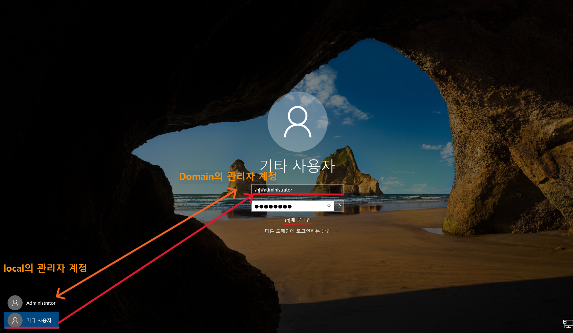 로컬 관리자로도 로그인 가능하지만 그렇게 하면 우리가 DC서버에 멤버서버로 가입한 이유가 없다...
