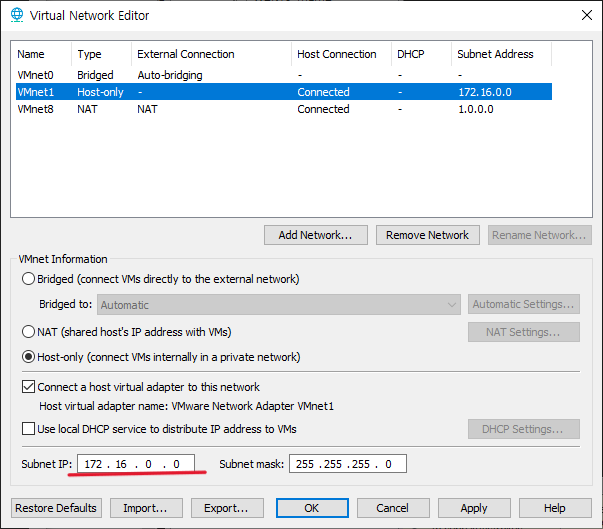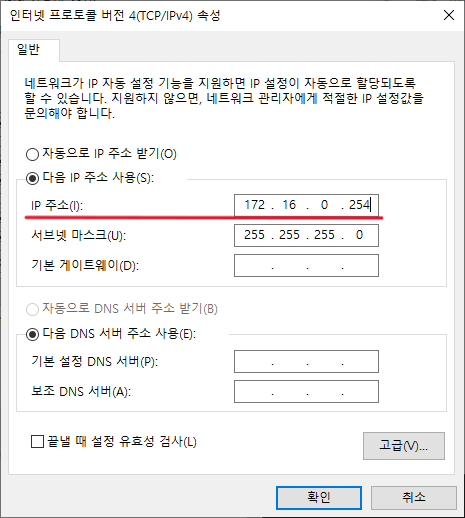 (Host only 라서 게이트 웨이가 필요없어서 254값을 부여해도 상관없다)