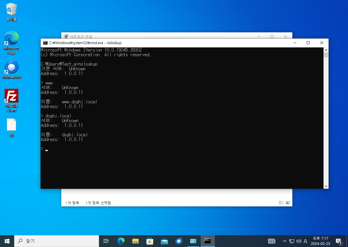 수동 설정후 nslookup으로 확인까지 마치면 웹서버에 접속해보자