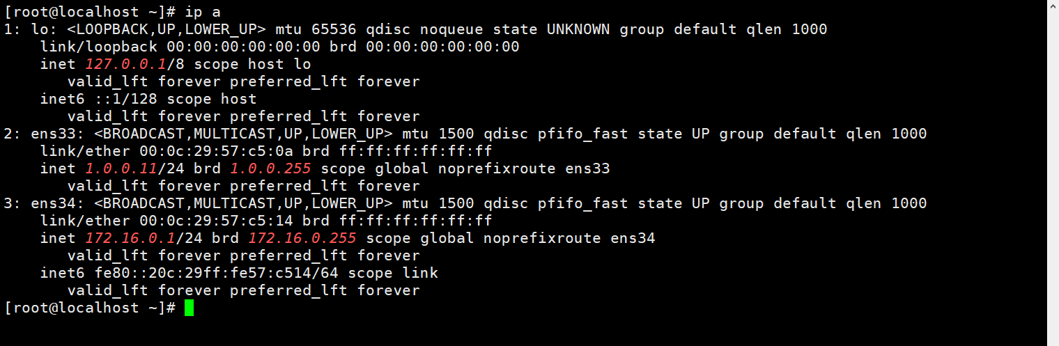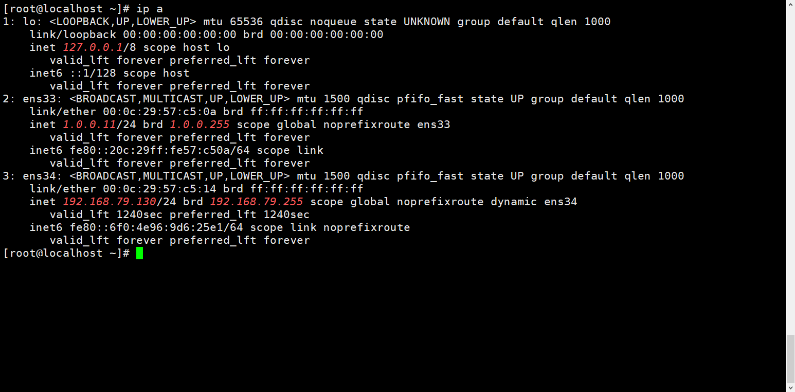 확인 해보면 이전과 다르게 ens34라는 IP가 하나 더 추가된 것을 볼 수 있다.