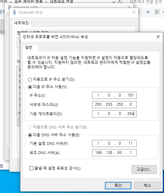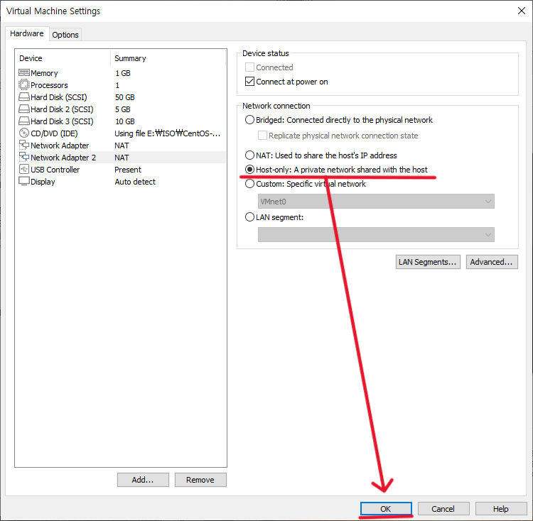 Host only에게 필요 없는 DNS,GATEWAY 값도 지워줬다.