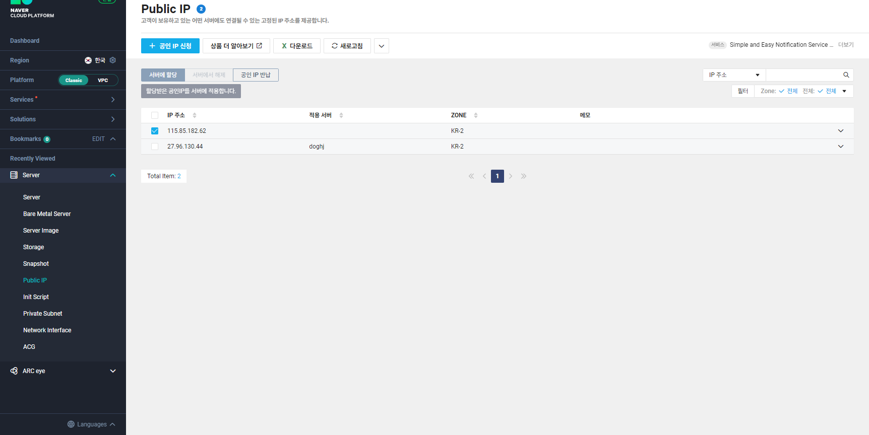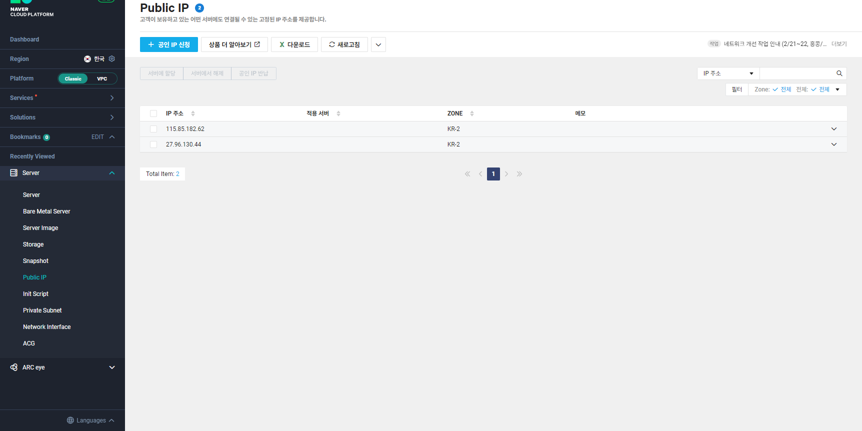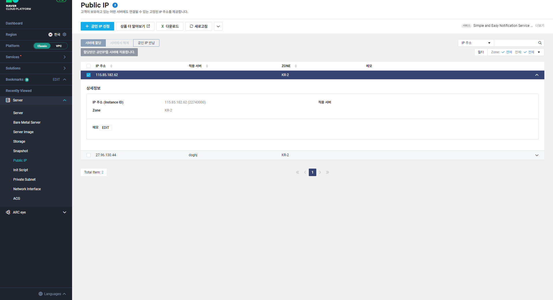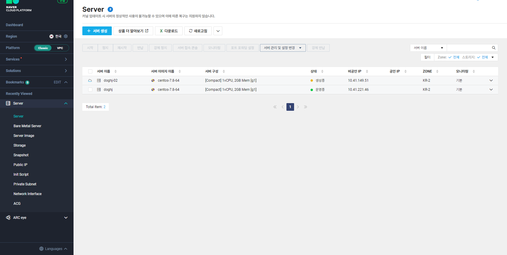 위 사진처럼 설정할 예정이라 이번엔 서버를 2개 대여했다.
