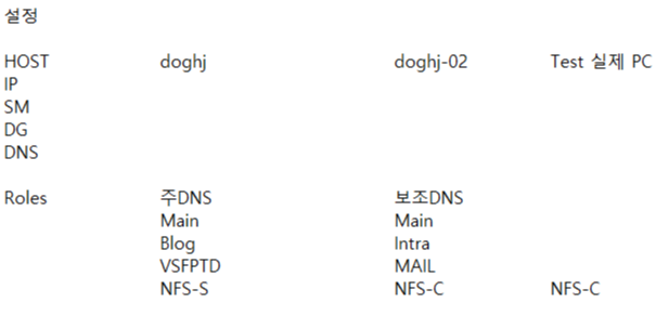 각 서버에 DNS와 http, ftp, mail, nfs 를 모두 설치해주자