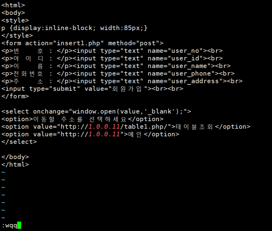 table1.php를 마지막으로 수정해주자