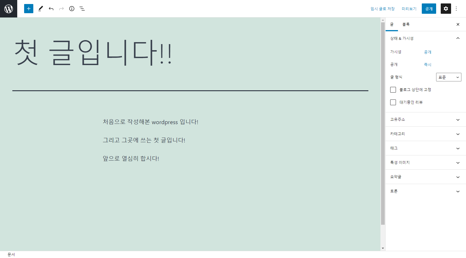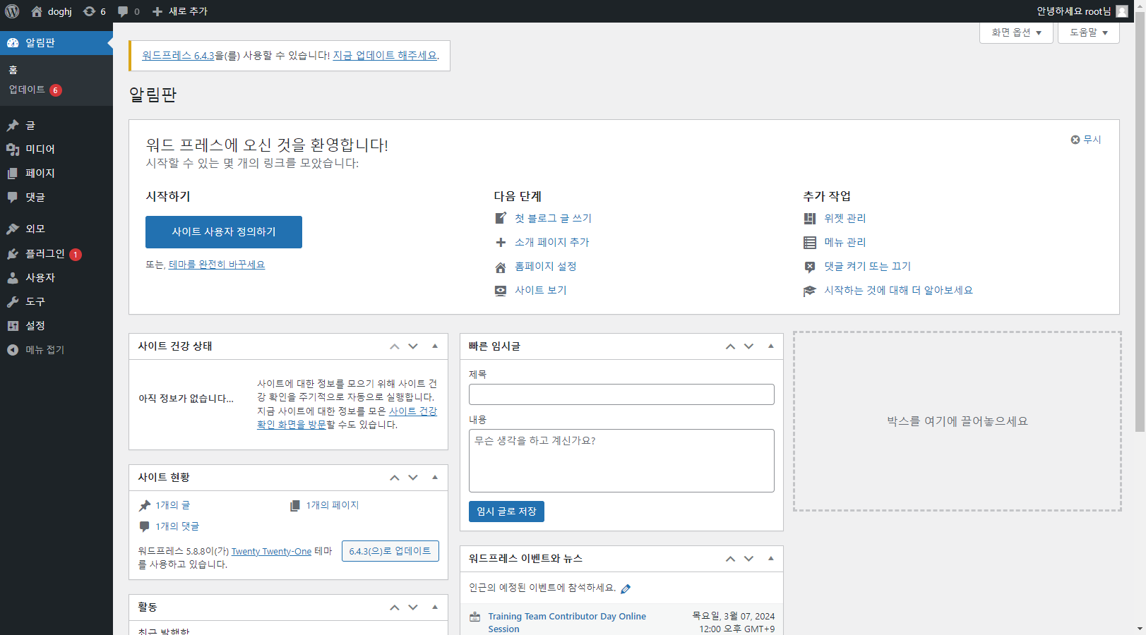 이제 위 사진처럼 사이트를 관리하고 글을 작성할 수 있게 됐다!!