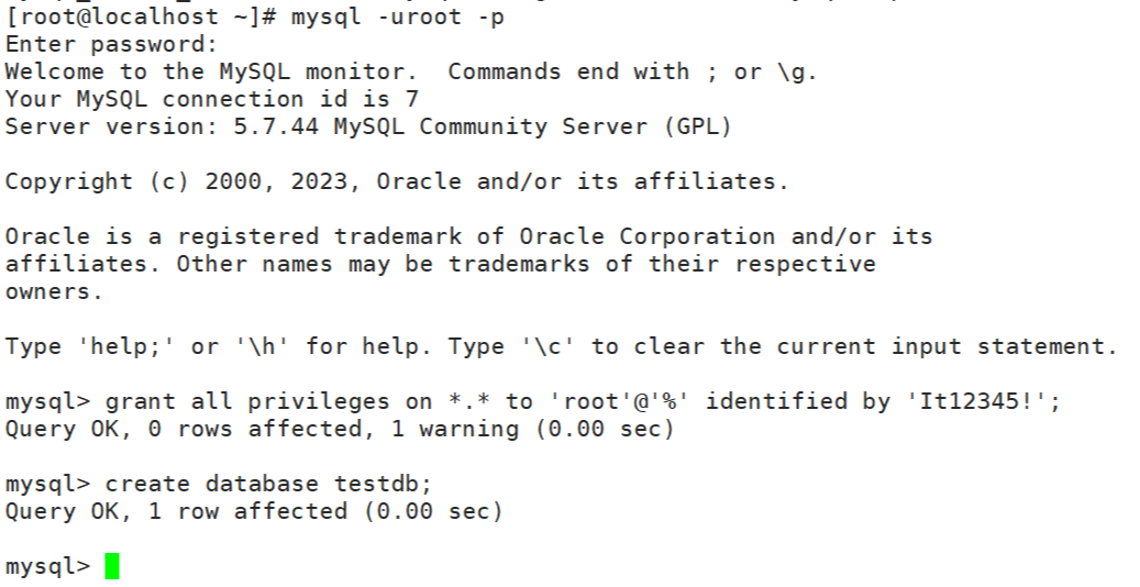 이제 testdb 가 만들어 졌으니