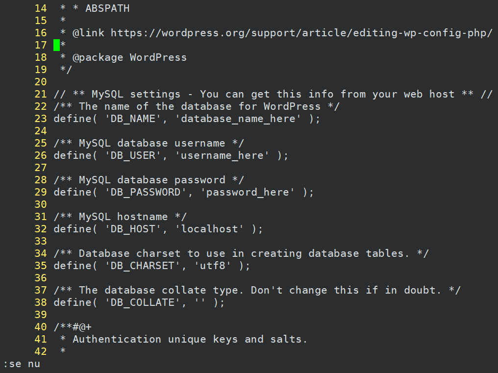 vi wp-config.php