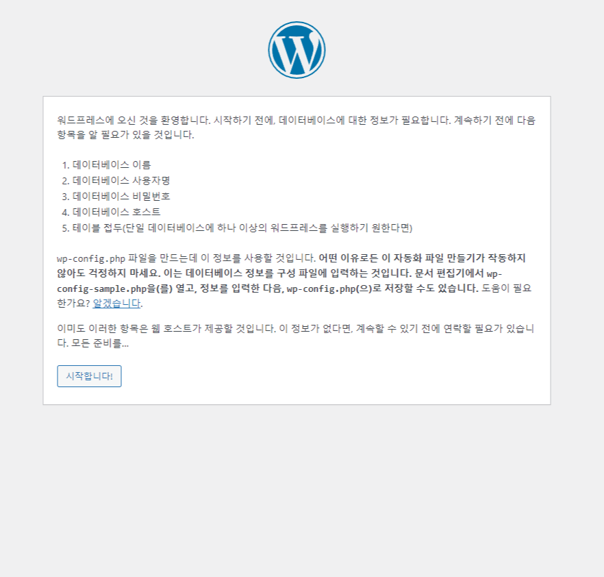 이제 시작해서 wp-config.php 파일을 작성하면 되지만