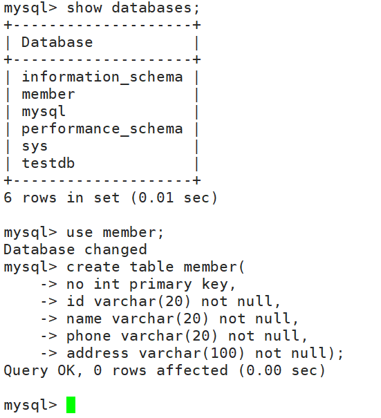 3번 서버에 member 데이터베이스, 테이블들을 생성하자