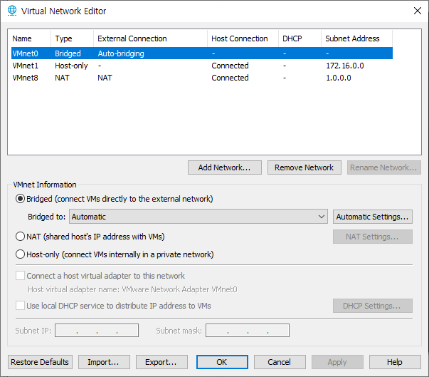 이렇게 세가지 네트워크 대역으로 나눈 뒤에