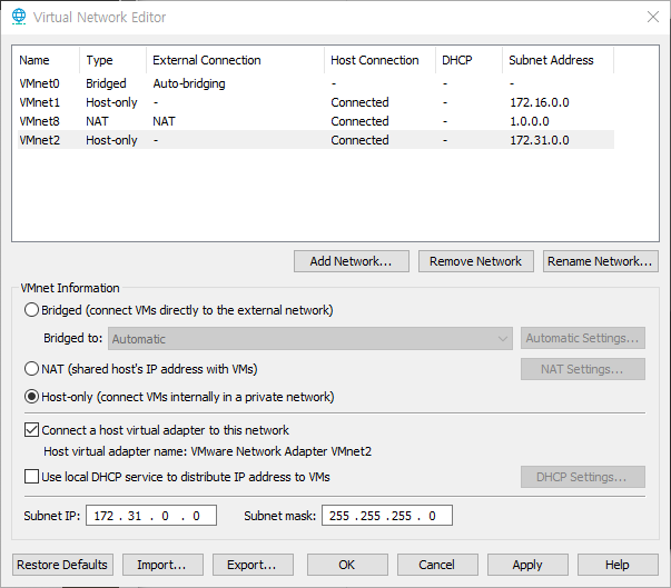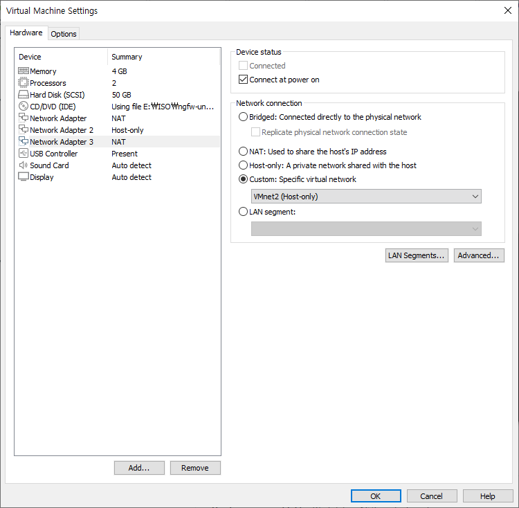 첫번째로 hostonly2 네트워크 카드를 추가했다.