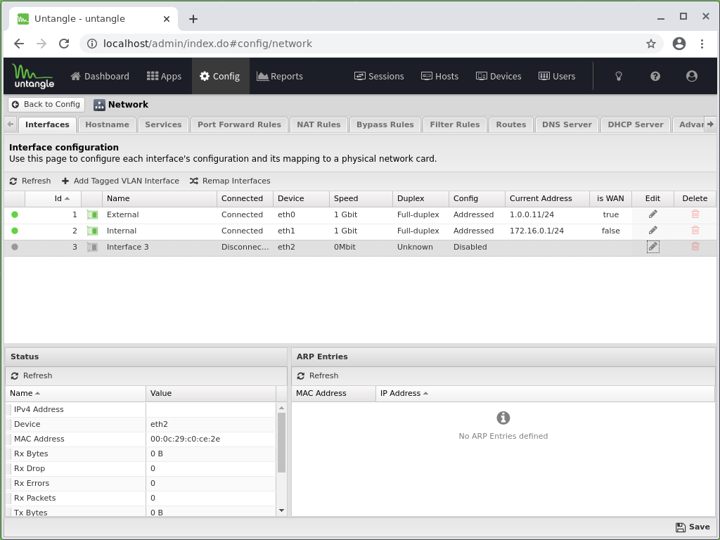 그다음 Untangle에 세개의 네트워크 카드를 장착해줬다.