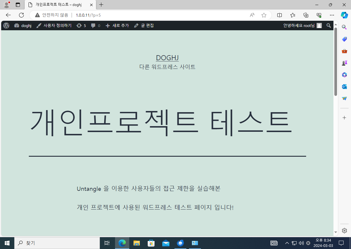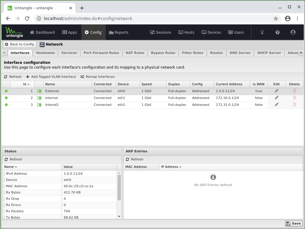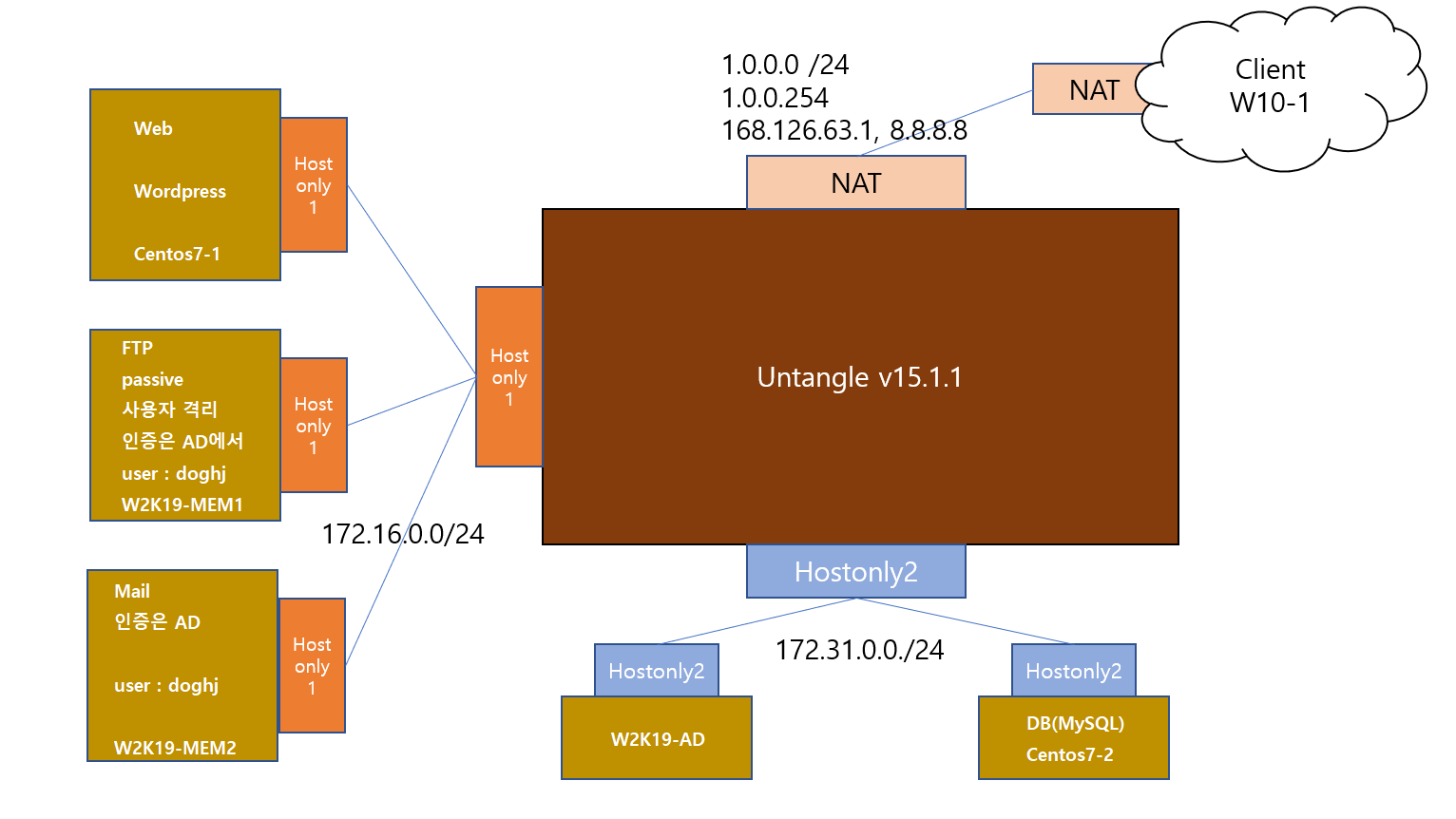 세가지 모두 1.0.0.11의 untangle IP로 접속해 서비스를 이용했다!