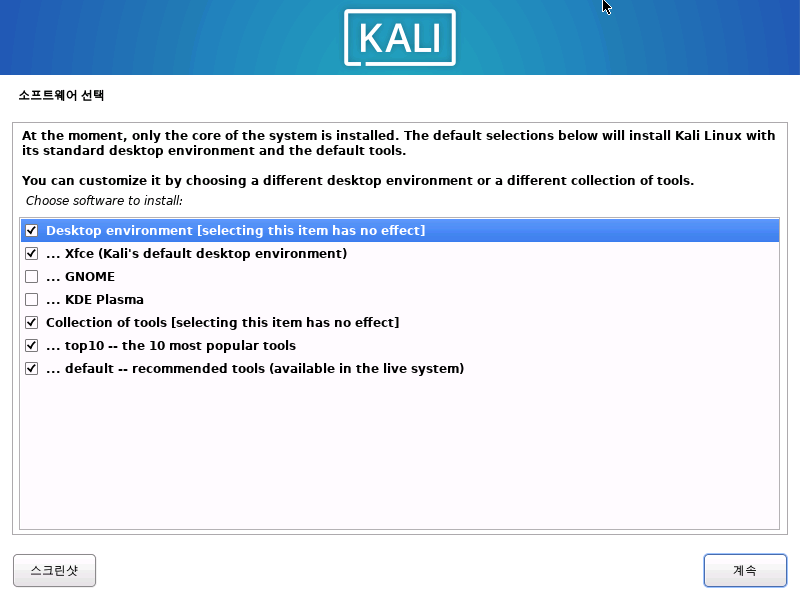 체크 되있지 않은 gnome, kde 들의 항목이 보이는데