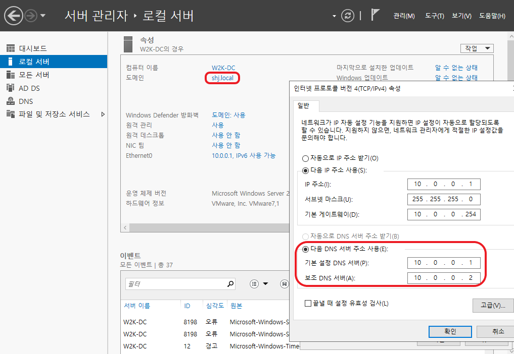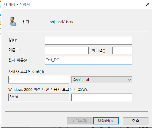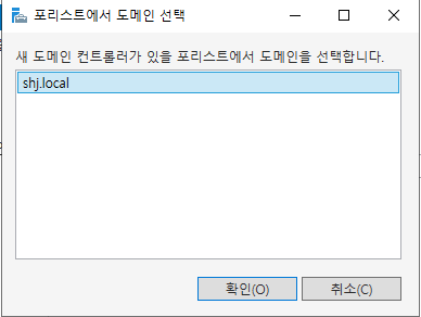우리는 shj.local의 DC가 되기 위한 것이기 때문에 shj.local의 자격 증명을 받아야한다.