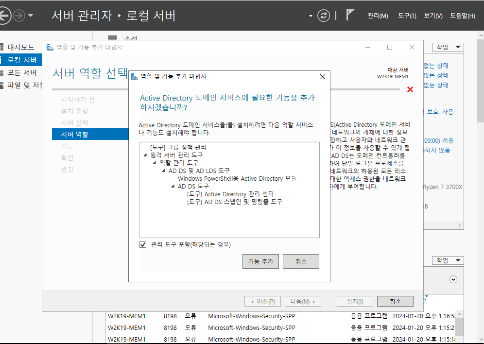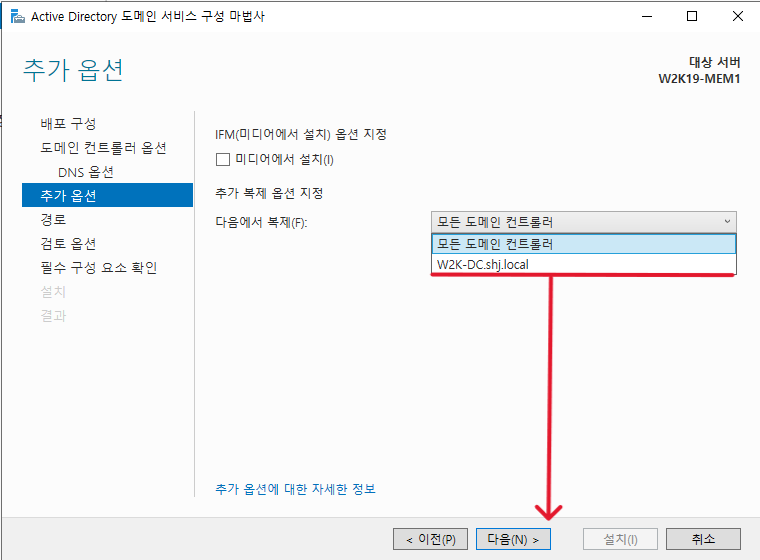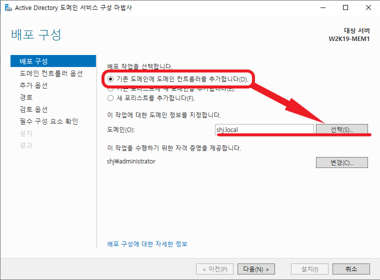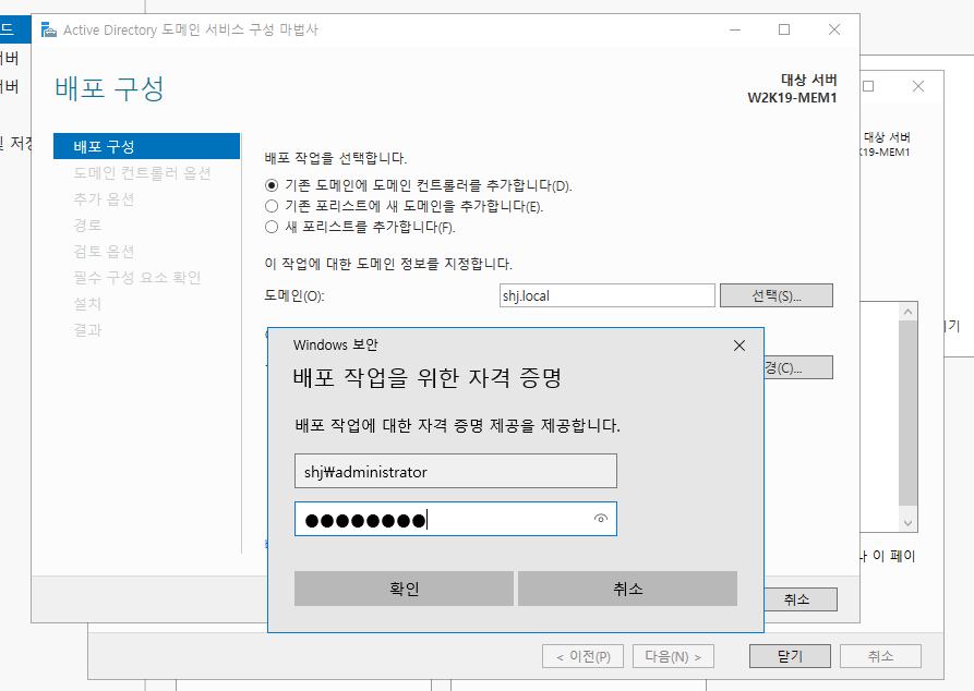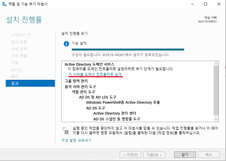 이제 W2K19-MEM1도 도메인 컨트롤러로 승격 시켜 보겠다.